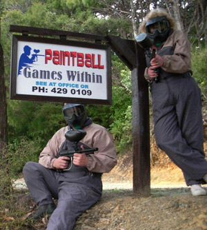 Paintballs are composed of a non-toxic, biodegradable, water soluble polymer. Games are played here at Stray Possum on Great Barrier Island and players use the bush for tactical cover.